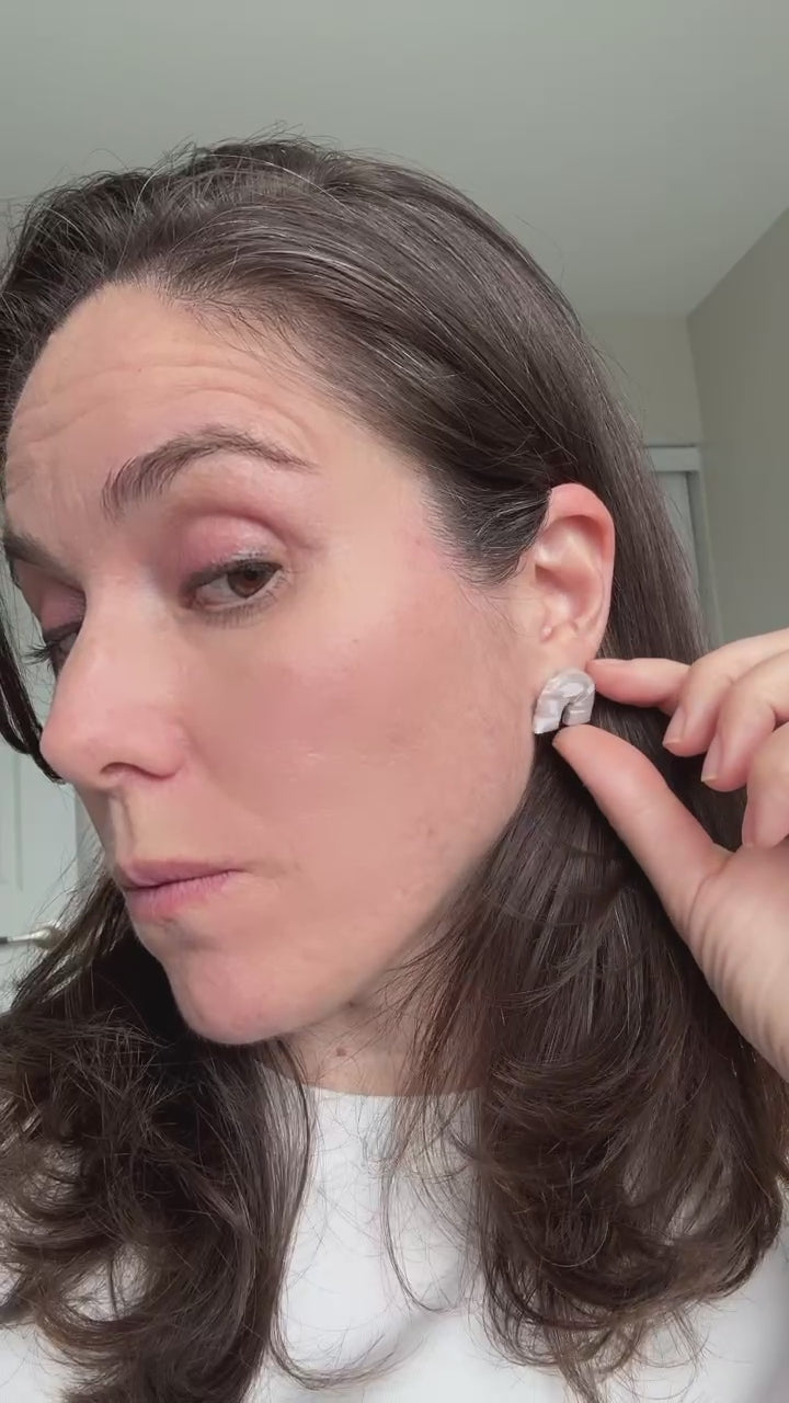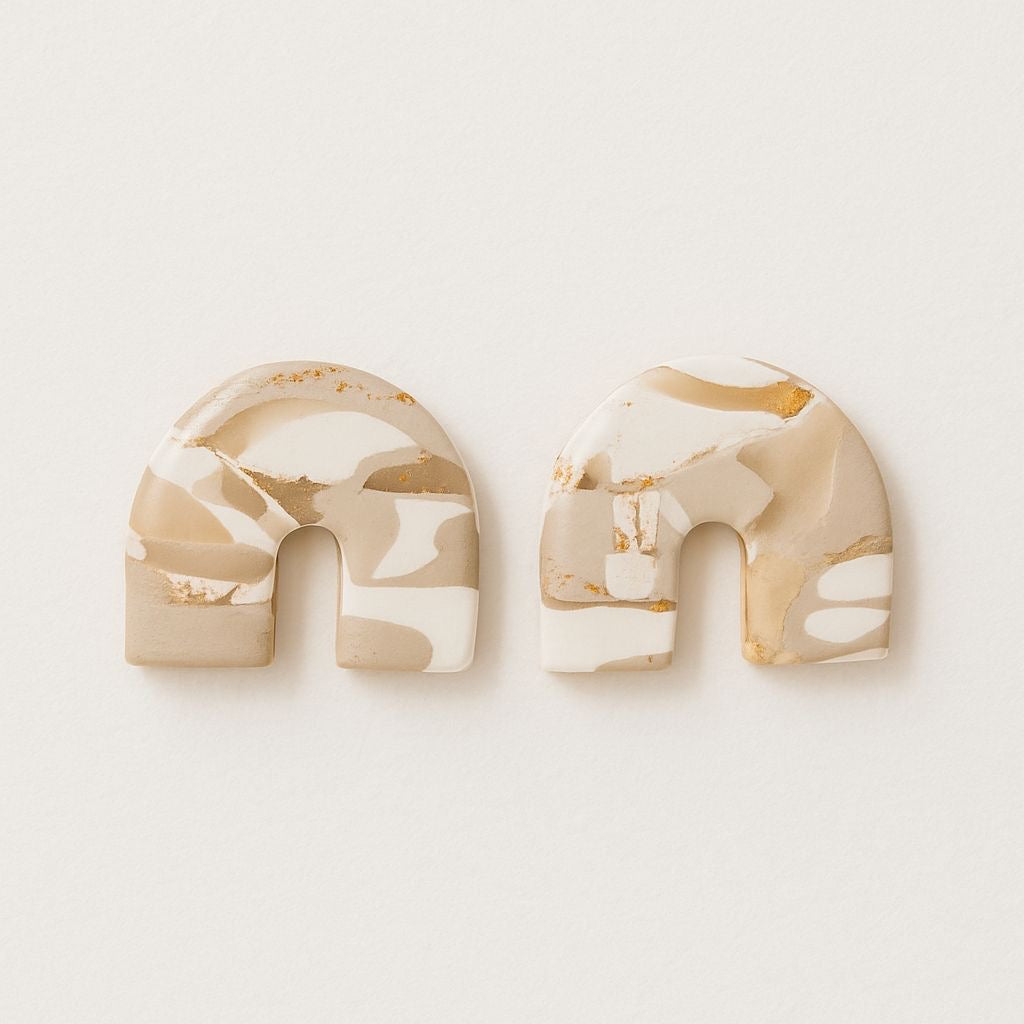 Chic and subtle, Icon features a mini arch silhouette marbled in soft tones of beige, white, and gold foil. Its curved shape brings a refined twist to a minimalist design — delicate, elegant, and easy to wear.