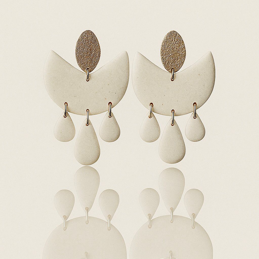 Bold and earthy, Anchor blends organic textures with sculptural elegance. Crafted from polymer clay and real sand, each drop is sealed with a smooth resin finish that mimics sunlit stone. The gold-plated leaf stud adds a warm, natural glow.